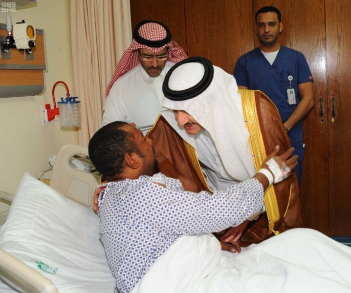 ونقل سموّه للمصابين تمنيات خادم الحرمين الشريفين الملك سلمان بن عبدالعزيز آل سعود, وسمو ولي عهده الأمين, وسمو ولي ولي العهد – حفظهم الله -, للمصابين بالشفاء العاجل, وأن يمنّ عليهم بالصحة والعافية .