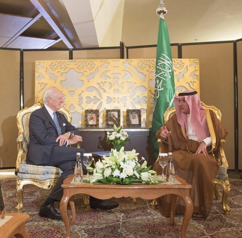 التقى معالي وزير الخارجية عادل بن أحمد الجبير في الرياض،المبعوث الأممي إلى سورية ستيفان دي ميستورا، وذلك على هامش الاجتماع الموسع الثاني للمعارضة السورية.