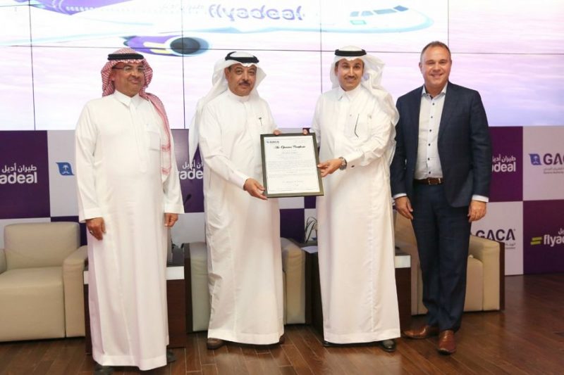 سلم معالي رئيس الهيئة العامة للطيران المدني الأستاذ عبدالحكيم بن محمد التميمي، رخصة المشغل الجوي إلى مدير عام شركة الخطوط الجوية العربية السعودية رئيس مجلس إدارة شركة طيران “أديل”، صالح بن ناصر الجاسر.