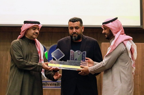 والدكتور علي الشهراني مدير الجامعة العربية المفتوحة في المملكة الملكف، وعدد كبير من الاعلاميين والإعلاميات والكتاب والصحفيين اكتضت جنبات المسرح.