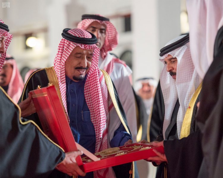 ولدى وصول خادم الحرمين الشريفين إلى مقر حفل الاستقبال بقصر الصخير، كان في استقباله الملك حمد بن عيسى آل خليفة ملك مملكة البحرين، والأمير خليفة بن سلمان آل خليفة رئيس الوزراء بمملكة البحرين، والأمير سلمان بن حمد آل خليفة ولي العهد نائب القائد الأعلى النائب الأول لرئيس مجلس الوزراء بمملكة البحرين.