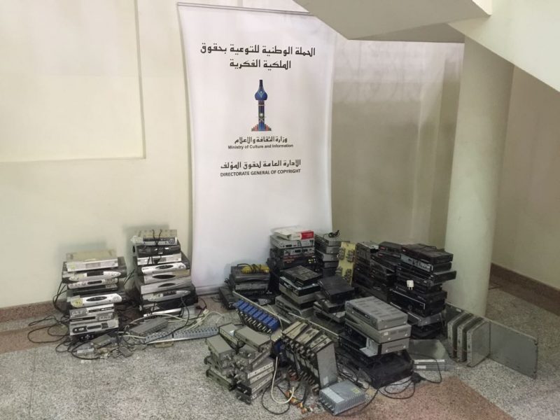 قامت إدارة الرقابة والتفتيش بالإدارة العامة لحقوق المؤلف بوزارة الإعلام ممثلةً بمديرها الأستاذ / عبدالله النفيسه بعمل فريد من نوعه وهو مداهمة ثلاث مجمعات سكنية لعمال شركات مختلفة بالمدينة الصناعية الثانية ( مدن ) في ليلة واحدة مساء يوم أمس الأربعاء الموافق ١٤٣٩/١٠/٢٧ وتم الوقوف على ثلاث غرف كل غرفة بمجمع سكني الأول أندونيسي الجنسية والغرفة الثانية باكستاني الجنسية والغرفة الثالثة هندي الجنسية يزاولون نشاط مخالف لنظام حماية حقوق المؤلف وهو فك شفرات قنوات فضائية وجعلها على شكل باقات وباشتراك شهري لغرف المجمع وبقيمة تتراوح ٣٠-٥٠ ريال والتوزيع يكون عبر تمرير تلك الكيبلات من أعلى البنايات حتى تصل إلى أبعد نقطة ومن ثم يقومون بدعم وتقوية البث من خلال أجهزة مخصصة ، وقد تم ضبط عدد ( ٨٨ ) جهاز رسيفر وعدد ( ٣٧ ) موزع وعدد ( ٤ ) مقوي وعدد ( ٦ ) محول .