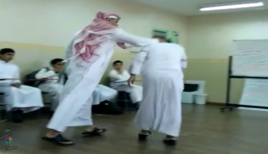 وأظهر مقطع آخر متداول المعلم والطالب يقفان جنباً إلى جنب ومِن ثم يعتذر المعلمُ للطالب، ويتبادلان تقبيل رأس بعضيهما.