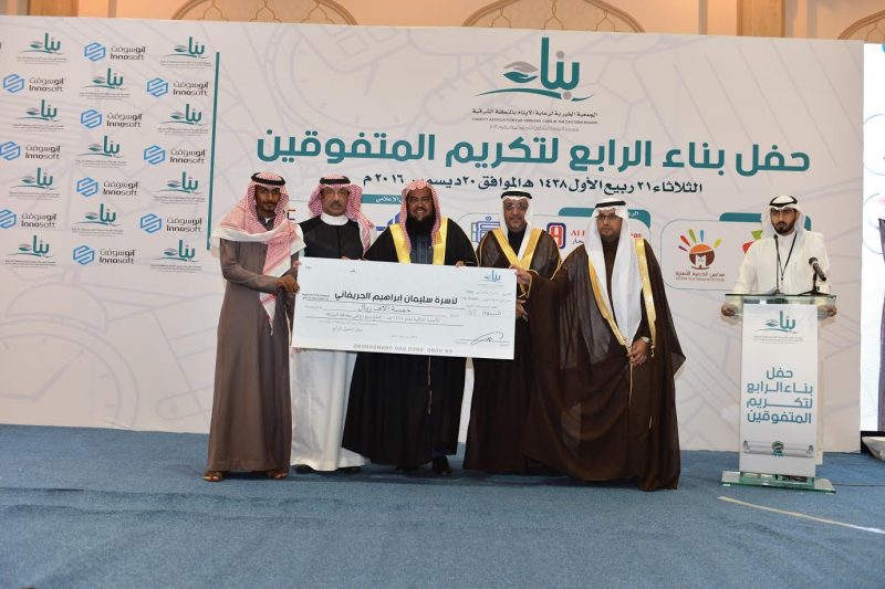 نيابة عن صاحب السمو الملكي الأمير تركي بن محمد بن فهد بن عبدالعزيز رئيس مجلس إدارة الجمعية الخيرية لرعاية الأيتام بالمنطقة الشرقية ( بناء ) كرم فضيلة الشيخ صالح بن عبدالرحمن اليوسف نائب رئيس مجلس إدارة الجمعية في الحفل الذي أقامته الجمعية لتكريم الطلاب والطالبات المتفوقين دراسياً بالخبر وعددهم 186 طالباً وطالبة .