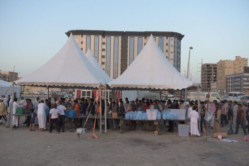 أكد ذلك ناصر بن عايد الشمري مدير مكتب التوعية بالجبيل وقال بدأ المخيم الرمضاني الثالث والعشرون لهذا العام 1438هـ منذ اليوم الأول لشهر رمضان المبارك وسينتهي بأخر يوم من الشهر الفضيل ، حيث يفد عليه يومياً قرابة ثلاثة آلاف شخص من جميع الجنسيات يتوجهون إلى الخيام التي تم تقسيمها بحسب اللغة ويتم تقديم الوجبات ، حيث لم يكتفي المخيم بالتفطير بل يقام على هامش برامج إفطار صائم العديد من البرامج الدينية لتوعية الجاليات بأمور الدين الإسلامي الحنيف حيث تقام البرامج الفقرات بعد الإفطار الى صلاة العشاء