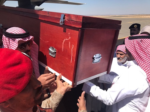 حضر استقبال الجثمان والد الشهيد وذويه ومدير شرطة العقيق العقيد عبدالعزيز الغامدي وقائد وحدة امن مطار الملك سعود المقدم بندر بن راجح البقمي ومدير مرور العقيق النقيب سعيد العمري ومدير المطارعبدالرحمن الهاشمي.