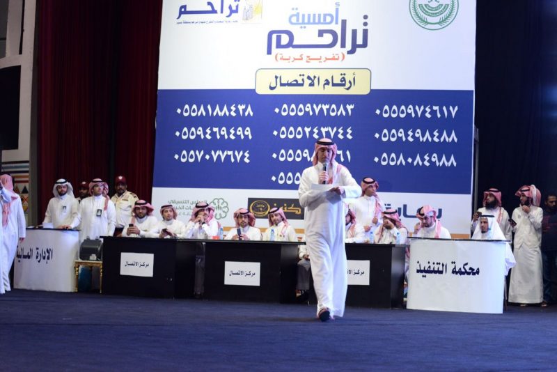 برعاية صاحب السمو الملكي الأمير فيصل بن خالد بن عبدالعزيز أمير منطقة عسير، الرئيس الفخري للجنة “تراحم” بالمنطقة ، دشن صاحب السمو الملكي الأمير منصور بن مقرن بن عبدالعزيز نائب امير منطقة عسير، مساء أمس، أمسية حملة “تفريج كربة” التي نظمتها اللجنة الوطنية لرعاية السجناء والمفرج عنهم وأسرهم “تراحم” بمنطقة عسير، وذلك على مسرح المفتاحة بأبها وبمشاركة عدد من الجهات الحكومية والأهلية والخاصة ،وعدد من المشائخ والوجهاء ونجوم الفن ومشاهير التواصل الاجتماعي .