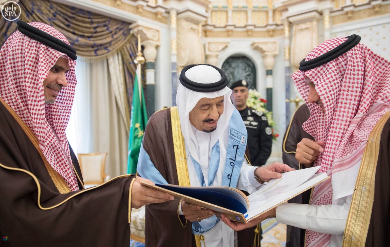 تسلم خادم الحرمين الشريفين الملك سلمان بن عبدالعزيز آل سعود – حفظه الله – شهادة الدكتوراة الفخرية في الدراسات التاريخية والحضارية الممنوحة له من جامعة الملك سعود.