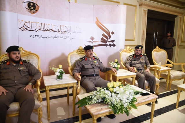بحضور معالي مدير الأمن العام الفريق عثمان بن ناصر المحرج، انطلقت التصفيات النهائية لمسابقة الأمير نايف لحفظ القرآن الكريم للقطاعات الأمنية التابعة لوزارة الداخلية في نسختها الخامسه 1437هـ والتي تقام في مدينة الرياض وسط حضور مميز من المتسابقين وفي مستهل الحفل الافتتاحي للمسابقة نقل الفريق عثمان المحرج تحيات وتقدير صاحب السمو الملكي ولي العهد نائب رئيس مجلس الوزراء وزير الداخلية حفظة الله لكافة المشاركين وقال ان سموه قد حملني امانة لكم جميعا بنقل تحياته وتقديره ، والدعاء لكم بالتوفيق خاصة انها تعنى بكتاب الله وحفظه وتحمل اسما غاليا على الجميع صاحب السمو الملكي الامير نايف بن عبدالعزيز رحمة الله واكد الفريق المحرج في الكلمة التي القاها على اهمية حفظ القران الكريم والعمل بآياته لانها صيانه للمسلم من الزلل، فالقرآن نور وهدى لمن اعتصم به لافتا النظر إلى أن الدولة حفظها الله اتخذت من القرآن الكريم دستورا وطبقت هديه منذ عهد المؤسس ” رحمه الله ” مرورا بعهود أبنائه البررة حتى هذا العهد الزاهر عهد خادم الحرمين الشريفين الملك سلمان بن عبدالعزيز ” امده الله بعونه وتوفيقه.