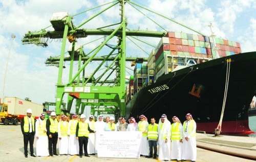 استقبل ميناء الملك عبد العزيز بالدمام أمس عبر محطة الحاويات الثانية (الشركة السعودية العالمية للموانئ) أكبر سفينة حاويات في تاريخ الميناء(السفينة العملاقة تاريوس) التابعة للخط الملاحي (EMC)، حيث تقدر طاقتها الاستيعابية (14,424) حاوية نمطية ويبلغ طولها (369) متراً وعرضها (52) متراً.