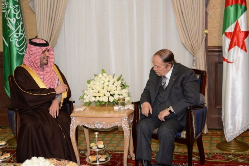 اسْتَقْبَلَ الرئيس عبدالعزيز بو تفليقة، رئيس الجمهورية الجزائرية الدِيمُقْرَاطِيّة الشعبية، فِي قصر زرادلة بالجزائر، الْيَوْم، صاحب السمو الملكي الأمير عبدالعزيز بن سعود بن نايف بن عبدالعزيز، وزير الدَّاخِلِيَّة.