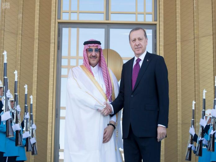 استقبل الرئيس رجب طيب أردوغان رئيس تركيا في القصر الرئاسي بأنقرة اليوم، الأمير محمد بن نايف بن عبد العزيز ولي العهد نائب رئيس مجلس الوزراء وزير الداخلية.