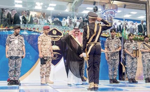 ولدى وصول ولي العهد لمقر الحفل يرافقه الأمير عبدالعزيز بن سعود بن نايف بن عبدالعزيز مستشار وزير الداخلية، كان في استقباله اللواء سعد الخليوي مدير عام الكلية وأركانات الكلية.