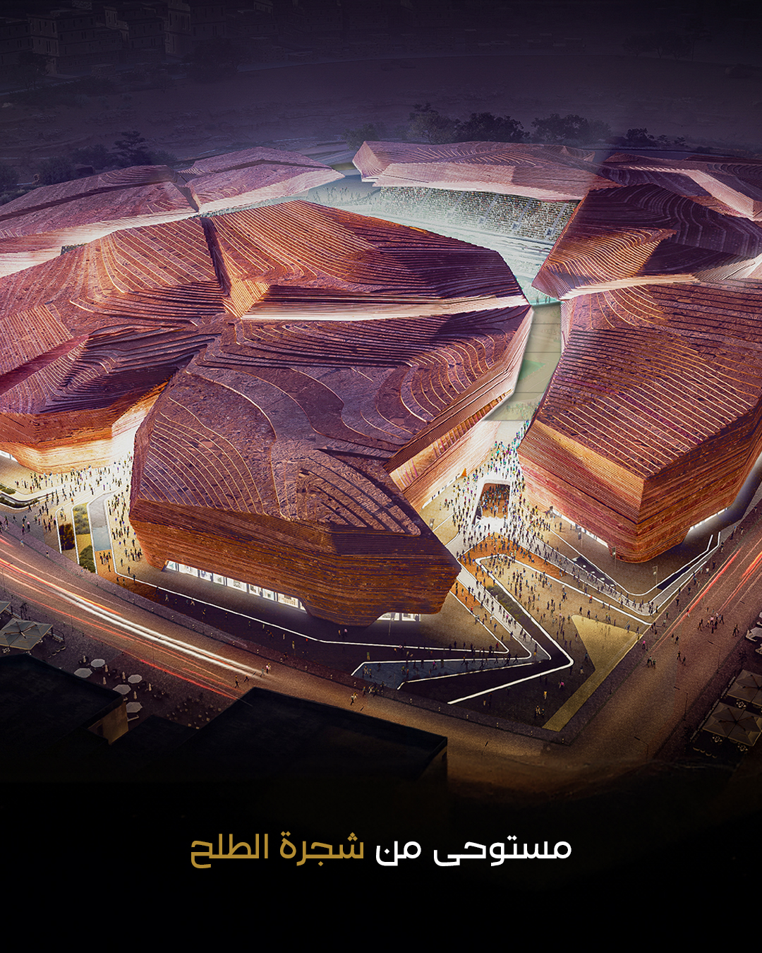 ويستلهم الإستاد تصميمه من شجرة الطلح، حيث تجمع الهندسة المعمارية بين العناصر الثقافية السعودية مع التصميم العصري، ويرمز هذا الدمج إلى إبراز المملكة لتراثها ودمجها مع رؤية ثاقبة للمستقبل، كما أن من أبرز مزايا الإستاد دمج التقنيات الحديثة، لتقدم تجارب تضفي مزيدًا من الأجواء الترحيبية على بطولة كأس العالم.