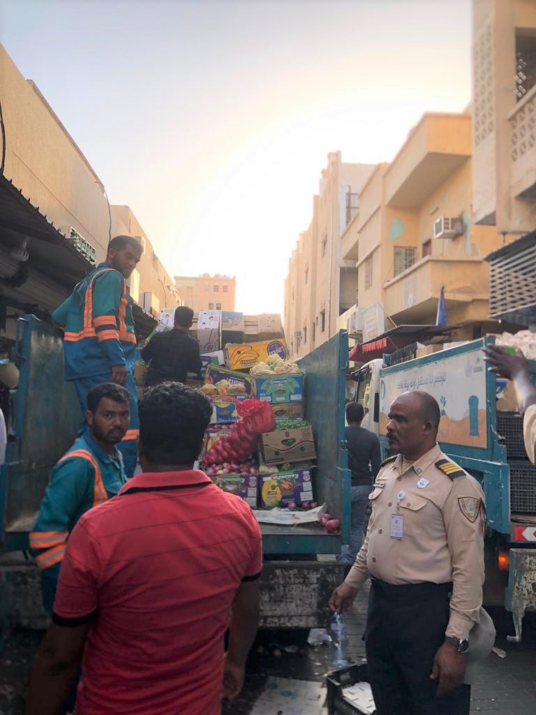 وقال: بأن الفرق الرقابية قامت خلال حملتها الميدانية ضمن جولة رصد المخالفات، بمعالجة المواد المصادرة من بضائع مختلفة؛ من خلال تسليمها بعد مصادرتها للجمعيات الخيرية كبضائع الملابس والأجهزة الإلكترونية، وتسليم الخضار والفواكه الصالح منها إلى بنك إطعام.