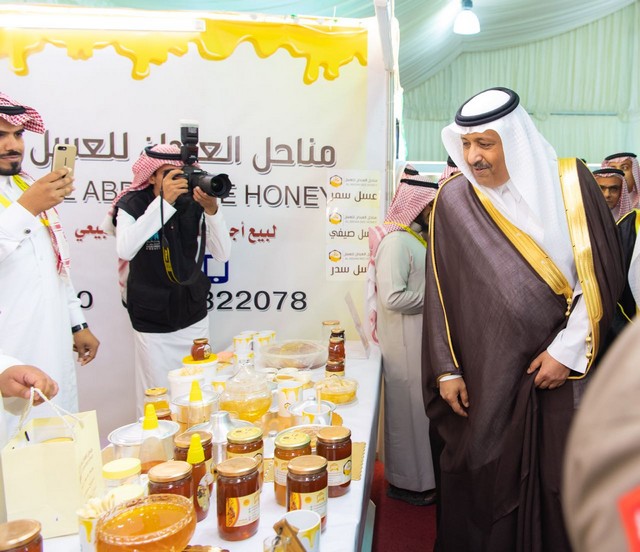 ولدى وصول سموه مقر المهرجان قام بقص الشريط إيذاناً بافتتاح المعرض، ثم تجول به وشاهد محتوياته ، مستمعاً إلى شرح من رئيس جمعية النحالين التعاونية بالباحة ورئيس اللجنة المنظمة للمهرجان الدكتور احمد بن عبدالله الخازم ، ومن المشاركين في المعرض البالغ عددهم 30 عارضاَ ، عن معروضاتهم التي تشمل العسل بأنواعه المختلفة من الصيف والسدر والسمرة والطلحة والمجرى ، كما أطلع سموه على منتجاته وأدوات صناعته، التي يشارك بها عارضين من داخل المملكة وخارجها، إلى جانب جناح جمعية النحالين التعاونية المشتمل على مختبر التحليل ومنتجات العسل، والأدوات التي يستخدمونها في تربية النحل وإنتاج العسل.