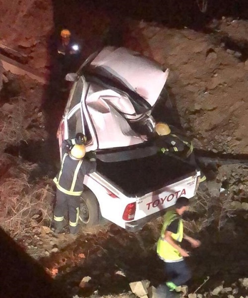 وقال المتحدث الرسمي للهلال الأحمر بالباحة عماد منسي الزهراني: إنه ورد بلاغ لغرفة العمليات في تمام الساعة 2:13 صباح اليوم الخميس، الأول من رمضان، يفيد بانقلاب سيارة من كوبري الحمدة على طريق قلوة في المخواة.