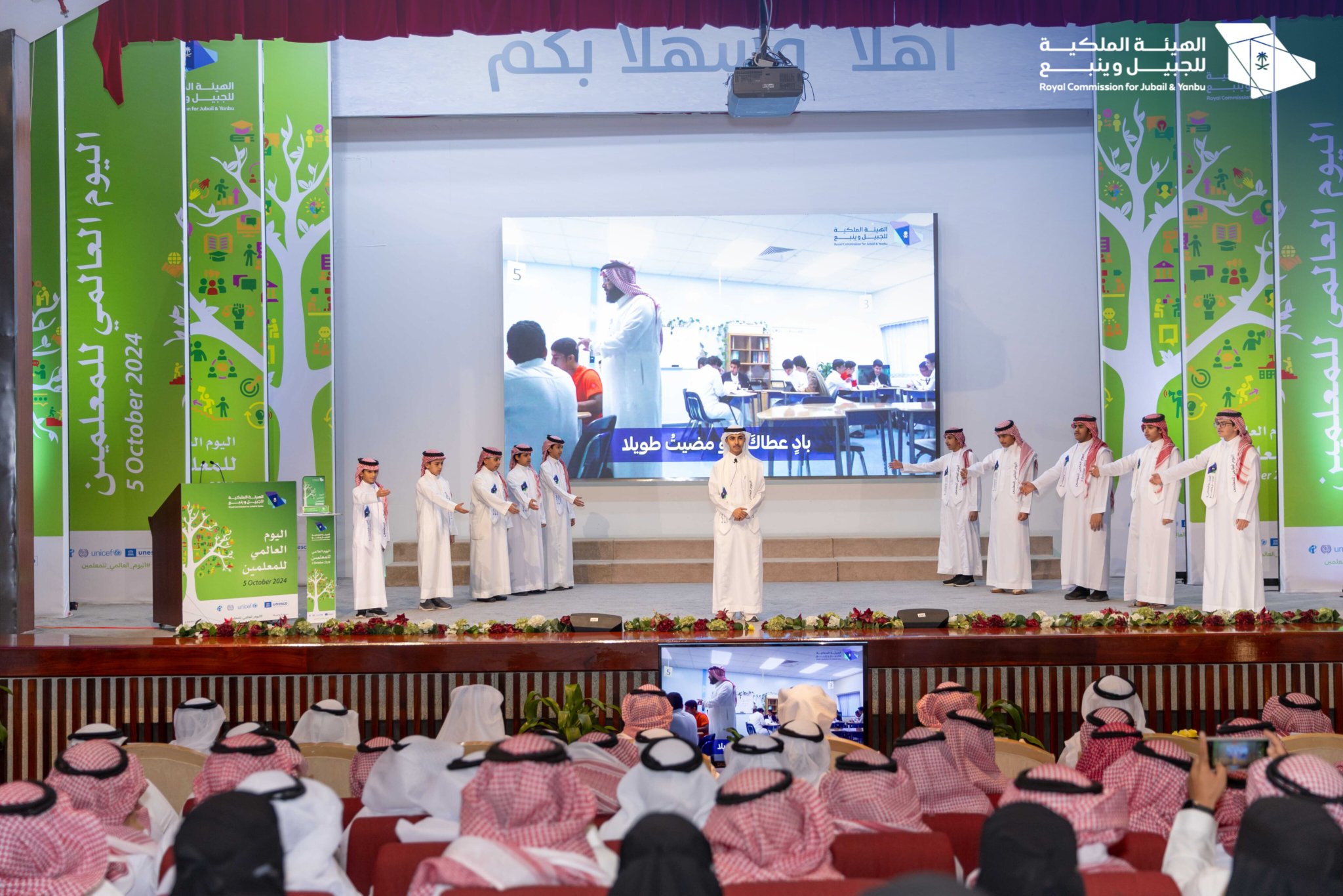 ثم قدم طلاب مدارس #الهيئةالملكيةبالجبيل لوحة إنشادية إبداعية بمناسبة #اليومالعالميللمعلمين في 5 أكتوبر 2024م، تحت عنوان (تلويحة العمر الجليل).