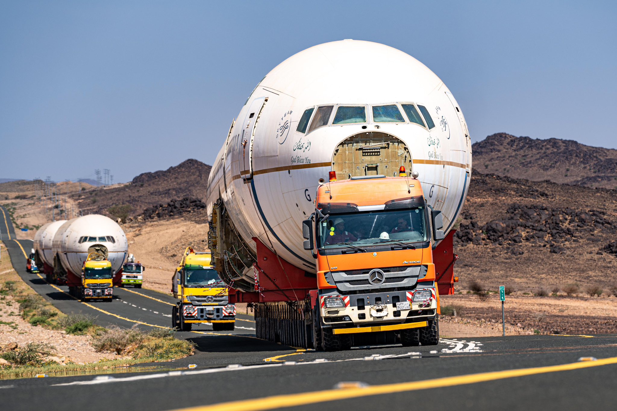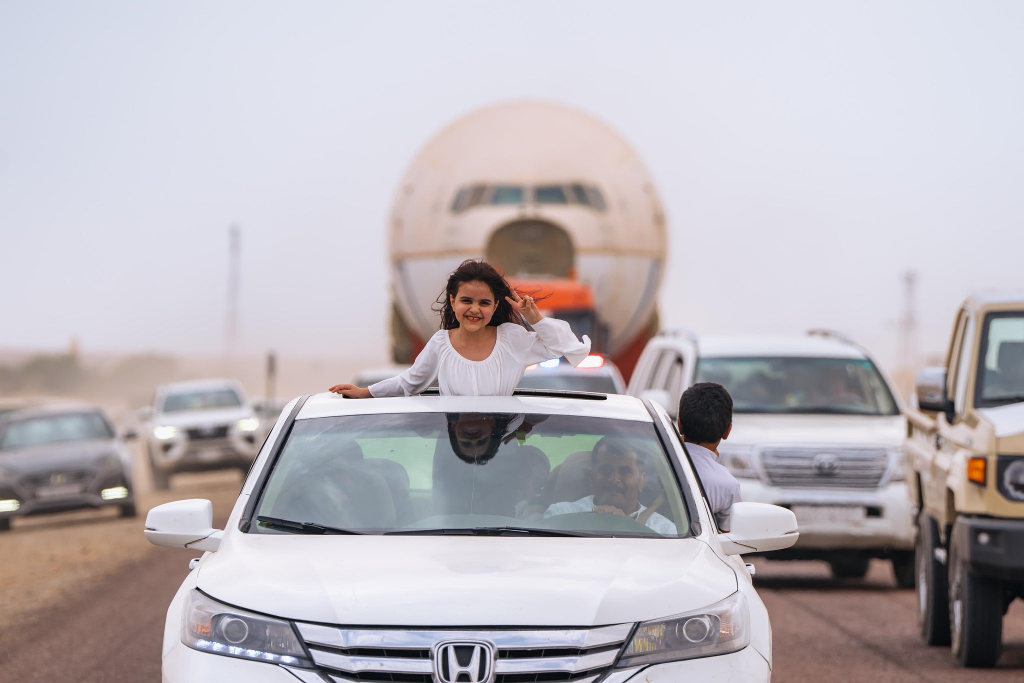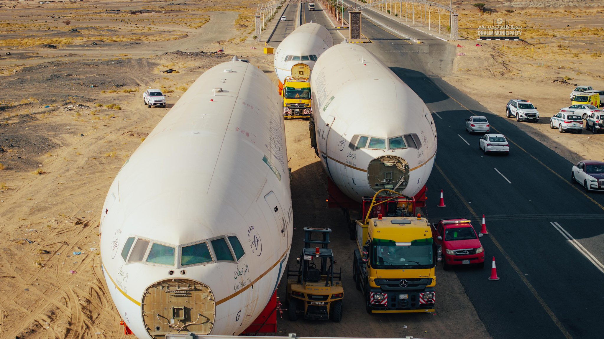 حيث وثقت عبور الطائرات الثلاث عبر طرقات المملكة، واستقبال المواطنين لتلك الرحلة التاريخية.