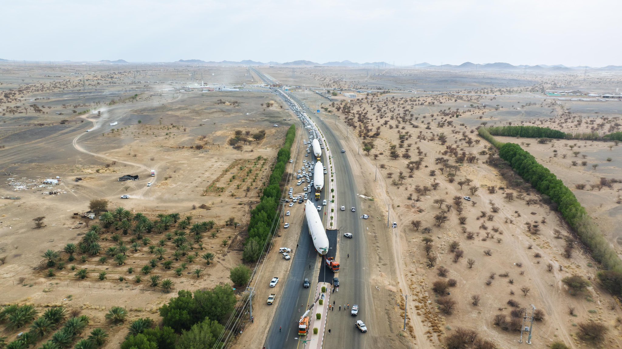 في مشهد جمع بين الفرح والبهجة بعدسة أبناء الوطن وتناقلها موقع التواصل الاجتماعي، رحلتها براً عبر مناطق السعودية، ما أضفى أجواءً من الحماسة والتشويق على الحدث.