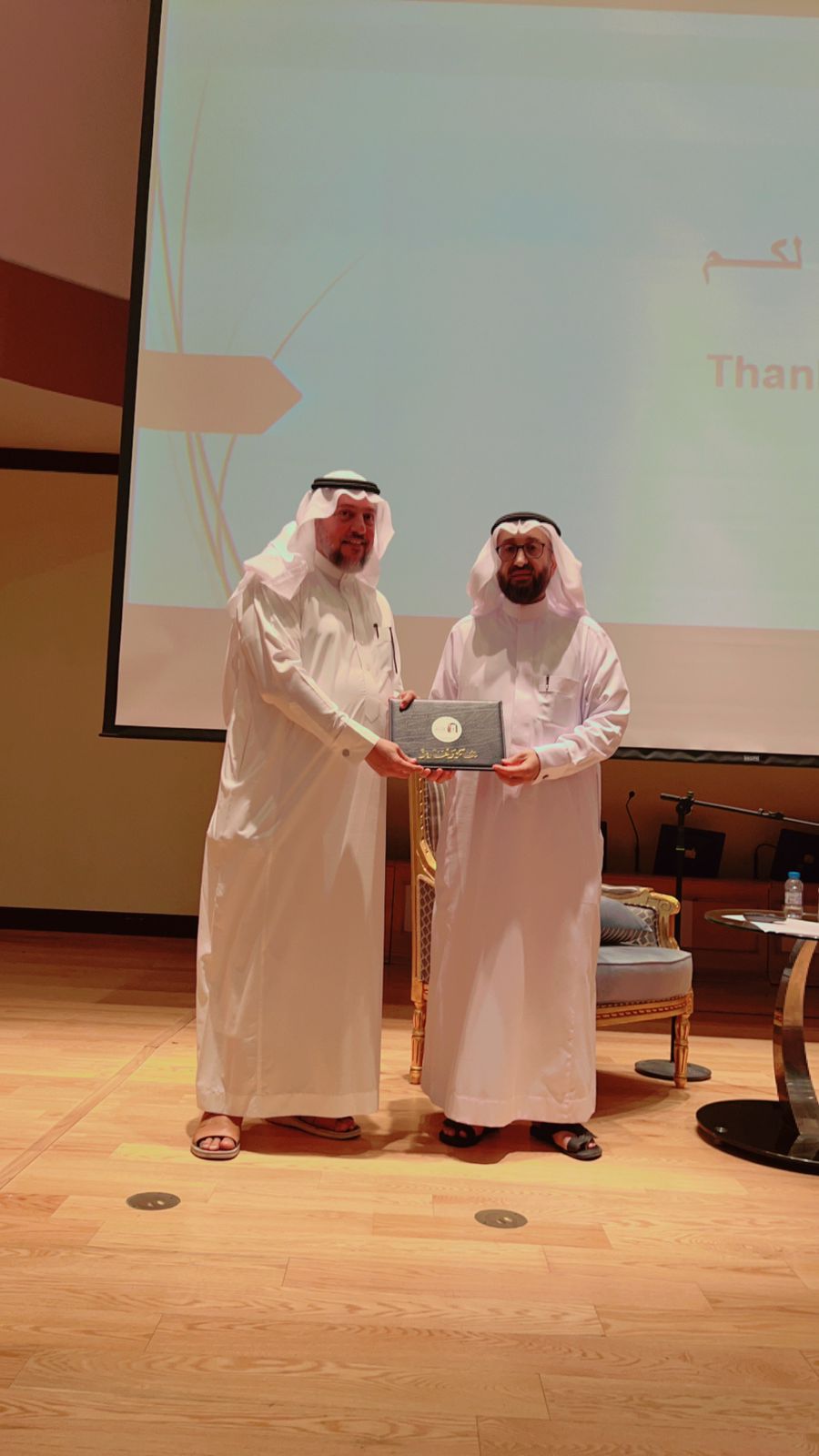 وفي ختام المحاضرة كرم رئيس جمعية أدباء الدكتور محمود آل بن زيد ضيفها الدكتور الملحم والتقطت الصور التذكارية بهذه المناسبة .
