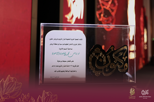 وفي ختام الحفل كرمت سمو راعية الحفل المدارس المتميزة في تخريج الخاتمات لعام 1445هـ، والجهات الإشرافية على الجمعية والجهات الراعية للحفل، والجهات الشريكة، كما تسلَّمت هدية تذكارية من الجمعية.