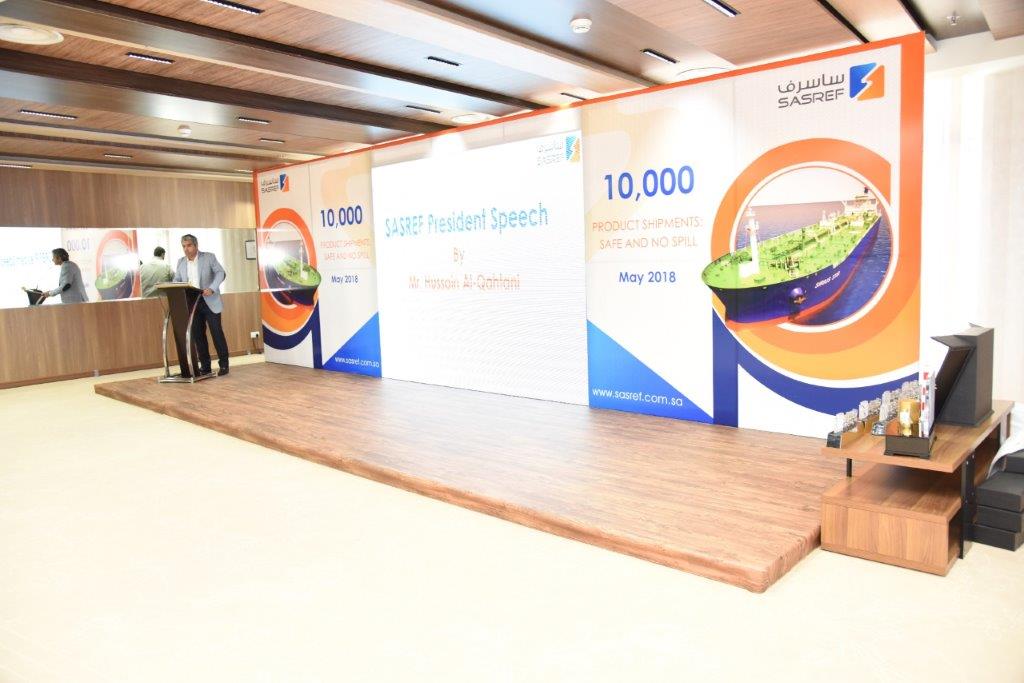 احتفلت شركة ساسرف يوم الخميس ١٠ مايو ٢٠١٨ بحضور رئيس مجلس الادارة الدكتور محمد بن يحيى القحطاني والعديد من ممثلي الإدارات الحكومية والعسكرية والشركات البترولية بمناسبة إكمال شحن ٤٢٠ مليون طن متري ومناولة ١٠،٠٠٠ سفينة بسلامة وبدون حوادث عبر منصات الشركة بميناء الملك فهد الصناعي بالجبيل. وفي هذا الشأن تحدث المهندس حسين القحطاني رئيس الشركة ان هذا الاحتفال يأتي لتأكيد التزامات المصفاة بتعهداتها وضمان توفير إمداداتها الكافية من مشتقات النفط عالية الجودة إلى المستهلكين في جميع أنحاء العالم. كما أكد القحطاني أن شحن منتجات المصفاة يتم عبر سفن مختلفة الأحجام وبمعدل سفينة واحدة يوميا إلى بلدان متعددة حول العالم حيث أكملت المصفاة شحن أكثر من 10,000 سفينة من مشتقات النفط وبطاقات تجاوزت نحو 420 مليون طن متري وذلك منذ إطلاق المصفاة أنشطتها التجارية في منتصف الثمانينيات. وقد تم شحن هذه السفن من فرضة التصدير التابعة للشركة في ميناء الملك فهد الصناعي، وتم تصديرها إلى الأسواق الآسيوية والخليجية والأوروبية والأمريكية والإفريقية. كما تم في هذه المناسبة تكريم الشريكين شركة ارامكو السعودية وشركة شل العالمية وميناء الملك فهد الصناعي بالجبيل وقطاع حرس الحدود بالجبيل وجمارك الجبيل وشركة خدمات الموانئ الوطنية على مشاركتهم في هذا النجاح العظيم والمشرف كشركاء اساسيين.