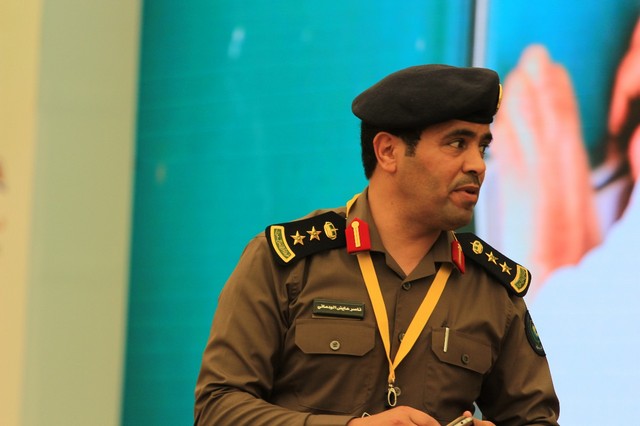 ثم كلمة الأستاذ معمر الزهراني مدير مكتب التعليم بالجبيل التي شكر فيها الدفاع المدني على المجهودات التي يبذلونها و مايقدمونه من فرضيات ومحاضرات للمدارس و توعيتهم من الحرائق و سلامتها .