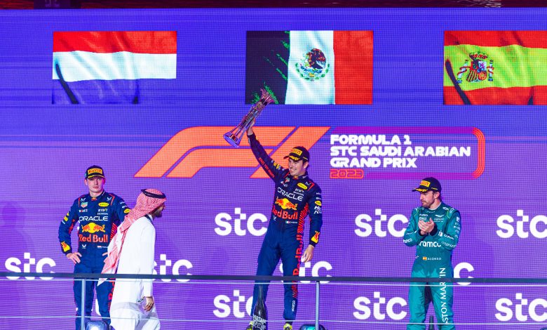ونجح المتسابق المكسيكي “سيرجيو بيريز” سائق فريق رد بُل، في حسم لقب سباق جائزة السعودية الكبرى STC للفورمولا1 على حلبة كورنيش جدة، بعد حصوله على المركز الأول في الجولة الثانية من موسم سباقات الفورمولا1 لموسم 2023، وذلك بعد منافسةٍ مع الهولندي “ماكس فيرستابين” سائق رد بُل، وبطل العالم في النسخة الماضية الذي نجح في التقدم من المركز 15 إلى وصافة الترتيب، كما نال جورج راسل سائق فريق مرسيدس المركز الثالث، بعد إيقاع العقوبة بحق الإسباني فيرناندو ألونسو سائق فريق أستون مارتن، بواقع عشر ثوانٍ، الذي تراجع للمرتبة الرابعة فيما جاءت نتائجُ بقية المتسابقين على النحو التالي: