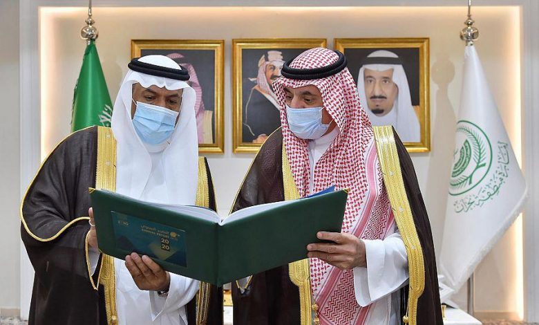 واطلع سموه على التقرير السنوي الذي تضمن مبادرات الغرفة خلال جائحة كورونا والفعاليات .