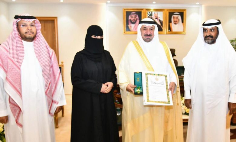سلّم صاحب السمو الأمير جلوي بن عبدالعزيز بن مساعد أمير منطقة نجران، في مكتبه بالإمارة اليوم، المواطنة هيفاء بنت حسين آل معمر، وسام الملك عبدالعزيز من الدرجة الثالثة، نظير تبرعها بجزء من الكبد لوالدها.