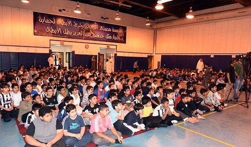 وعبر قائد المدرسة فيصل المسند تمثل هذه رسالة جميلة ومعبرة عن نبذ التعصب للفرق الرياضية بشكل ملفت للأنظار وان تكون بحدود وان الرياضة رسالة وقيمة للمجتمع وتشجيع الاندية يجمع ولا يفرق بين الاشخاص واضاف المسند تهدف هذه المبادرة الى التحلي بالقيم والاخلاق الطيبة لان الرياضة قيم واخلاق ويجب التحلي بها فالرياضة قبل ان تكون حصد للألقاب والكؤوس فهي تربية واخلاق موجهاً شكره وتقدير لكل من حضر وساند هذه المبادرة وبالأخص منسوبي المدرسة .
