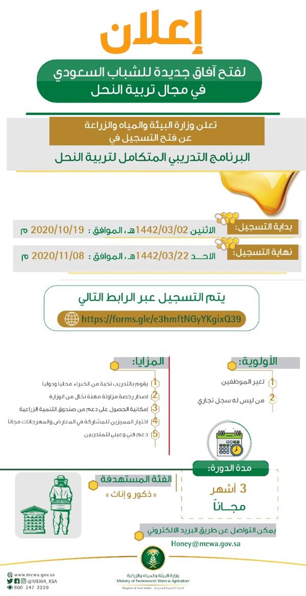 يذكر أن المدربين نخبة من الخبراء المحليين والدوليين، وتمنح الوزارة رخصة مزاولة مهنة “نحال”.