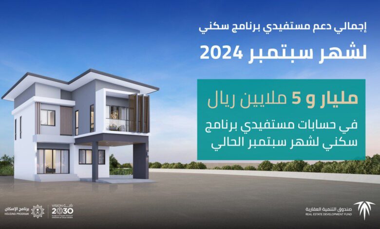 أعلن صندوق التنمية العقارية، اليوم، إيداع مليار وخمسة ملايين ريال في حسابات مستفيدي برنامج سكني من وزارة البلديات والإسكان والصندوق العقاري لشهر سبتمبر 2024.