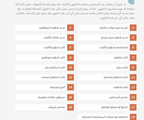 ليأتي الرد كما يلي: “لمزيد من التفاصيل عن المهن المسعودة يمكنك الاطلاع على صورة الإنفوجرافيك بقائمة المهن الـ 19، وهي:
