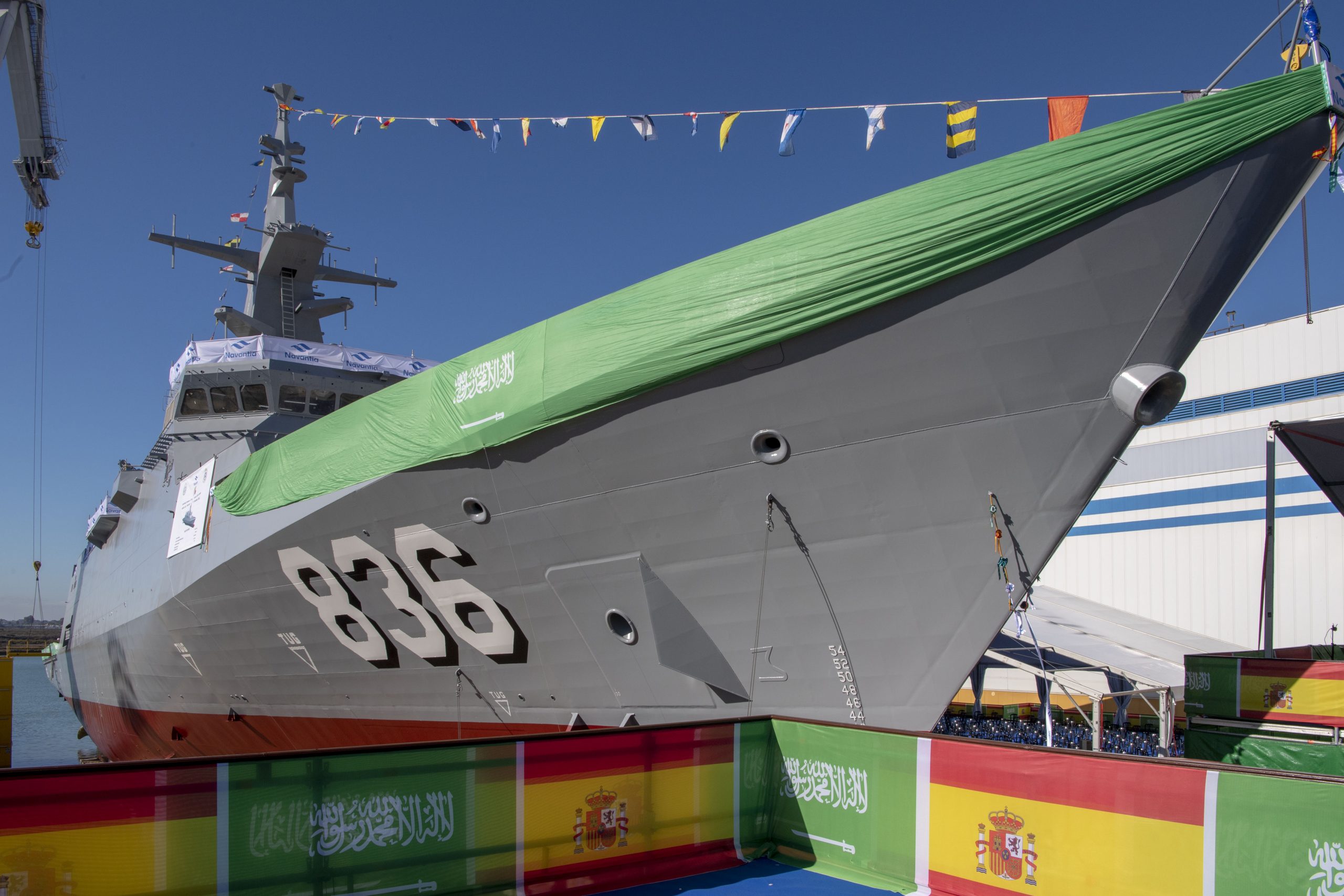 برعاية معالي قائد القوات البحرية الفريق الركن فهد بن عبدالله الغفيلي احتفلت القوات البحرية الملكية السعودية بمراسم تعويم السفينة الخامسة والاخيرة لمشروع السروات من نوع كورفيت “أفانتي 2200” التي اطلق عليها رسمياً اسم “سفينة جلالة الملك عنيزة” ، وذلك ضمن مراسم التعويم في حوض بناء السفن التابع لشركة نافانتيا في مدينه سان فرناندو بمقاطعة قادس الإسبانية.
