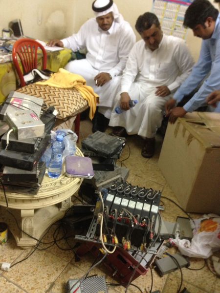 قامت إدارة الرقابة والتفتيش بالإدارة العامة لحقوق المؤلف بوزارة الإعلام ممثلةً بمديرها الأستاذ / عبدالله النفيسه بعمل فريد من نوعه وهو مداهمة ثلاث مجمعات سكنية لعمال شركات مختلفة بالمدينة الصناعية الثانية ( مدن ) في ليلة واحدة مساء يوم أمس الأربعاء الموافق ١٤٣٩/١٠/٢٧ وتم الوقوف على ثلاث غرف كل غرفة بمجمع سكني الأول أندونيسي الجنسية والغرفة الثانية باكستاني الجنسية والغرفة الثالثة هندي الجنسية يزاولون نشاط مخالف لنظام حماية حقوق المؤلف وهو فك شفرات قنوات فضائية وجعلها على شكل باقات وباشتراك شهري لغرف المجمع وبقيمة تتراوح ٣٠-٥٠ ريال والتوزيع يكون عبر تمرير تلك الكيبلات من أعلى البنايات حتى تصل إلى أبعد نقطة ومن ثم يقومون بدعم وتقوية البث من خلال أجهزة مخصصة ، وقد تم ضبط عدد ( ٨٨ ) جهاز رسيفر وعدد ( ٣٧ ) موزع وعدد ( ٤ ) مقوي وعدد ( ٦ ) محول .