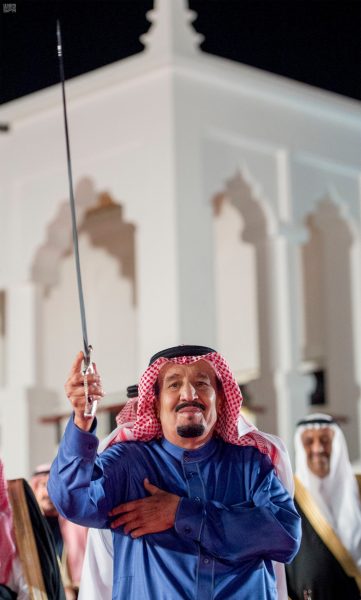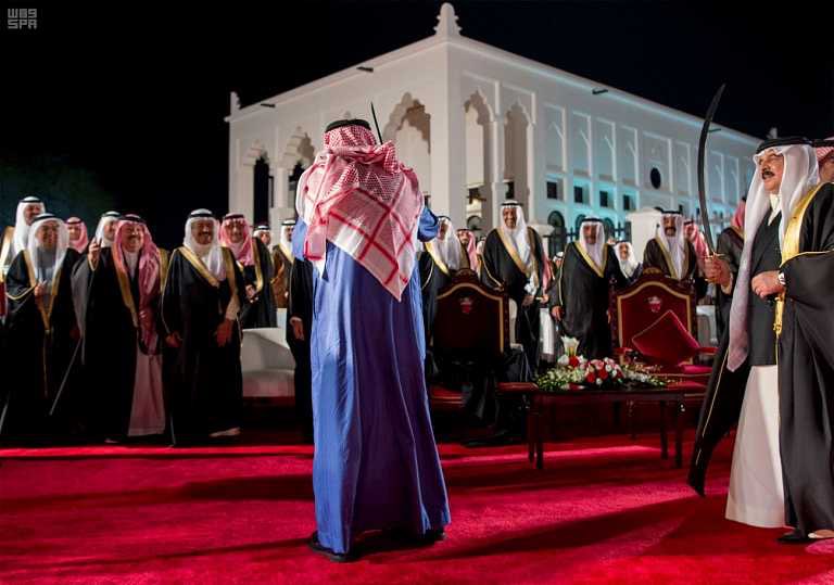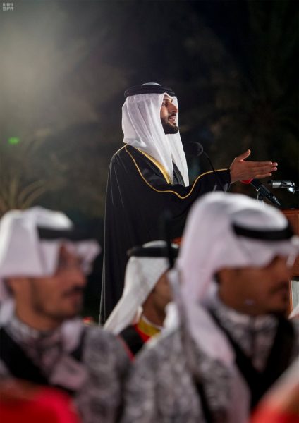 وألقى الشاعر الرائد مشعل بن محماس الحارثي قصيدة شعرية، إثر ذلك أدت فرقتان سعودية وبحرينية العرضة وشارك خادم الحرمين الشريفين وجلالة ملك مملكة البحرين في أداء العرضة.