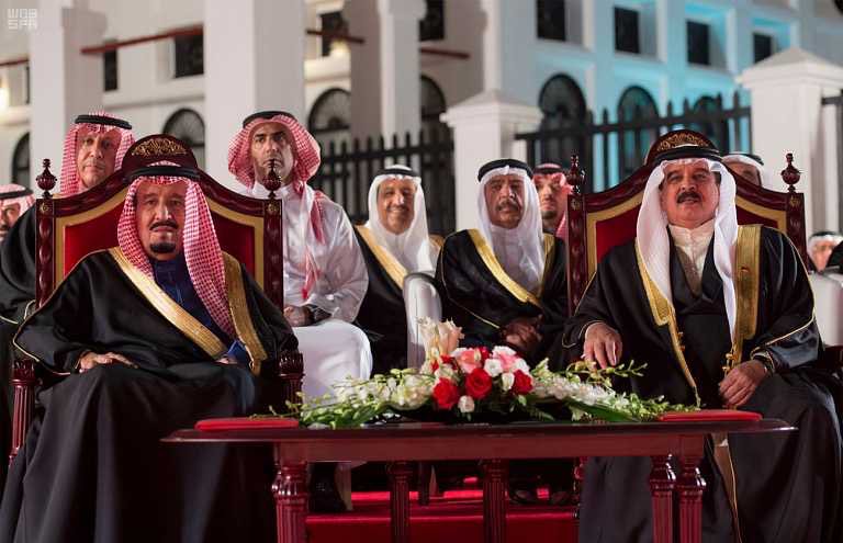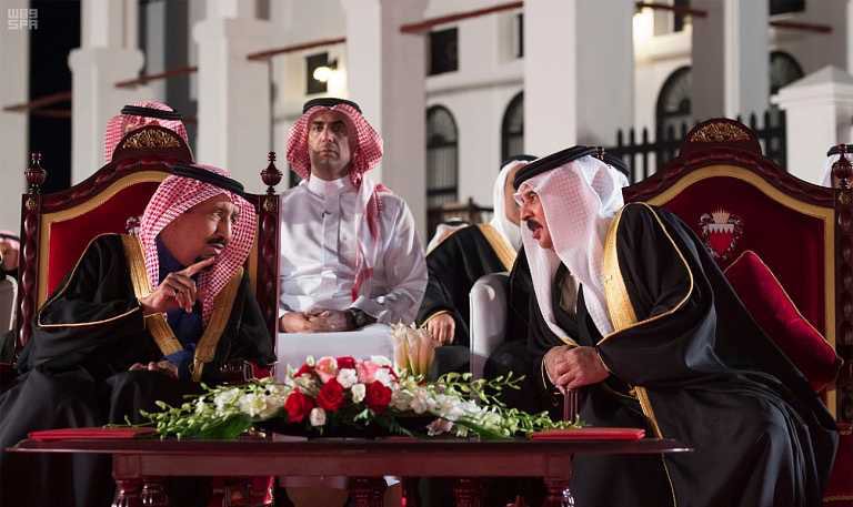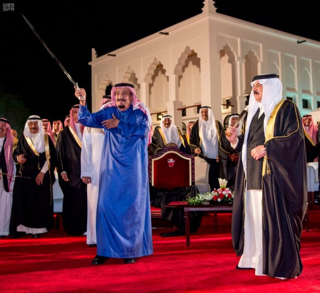وصول خادم الحرمين إلى مقر حفل الاستقبال بقصر الصخير في البحرين، كان في استقباله – رعاه الله – جلالة الملك حمد بن عيسى آل خليفة ملك مملكة البحرين، وصاحب السمو الملكي الأمير خليفة بن سلمان آل خليفة رئيس الوزراء بمملكة البحرين، وصاحب السمو الملكي الأمير سلمان بن حمد آل خليفة ولي العهد نائب القائد الأعلى النائب الأول لرئيس مجلس الوزراء بمملكة البحرين.