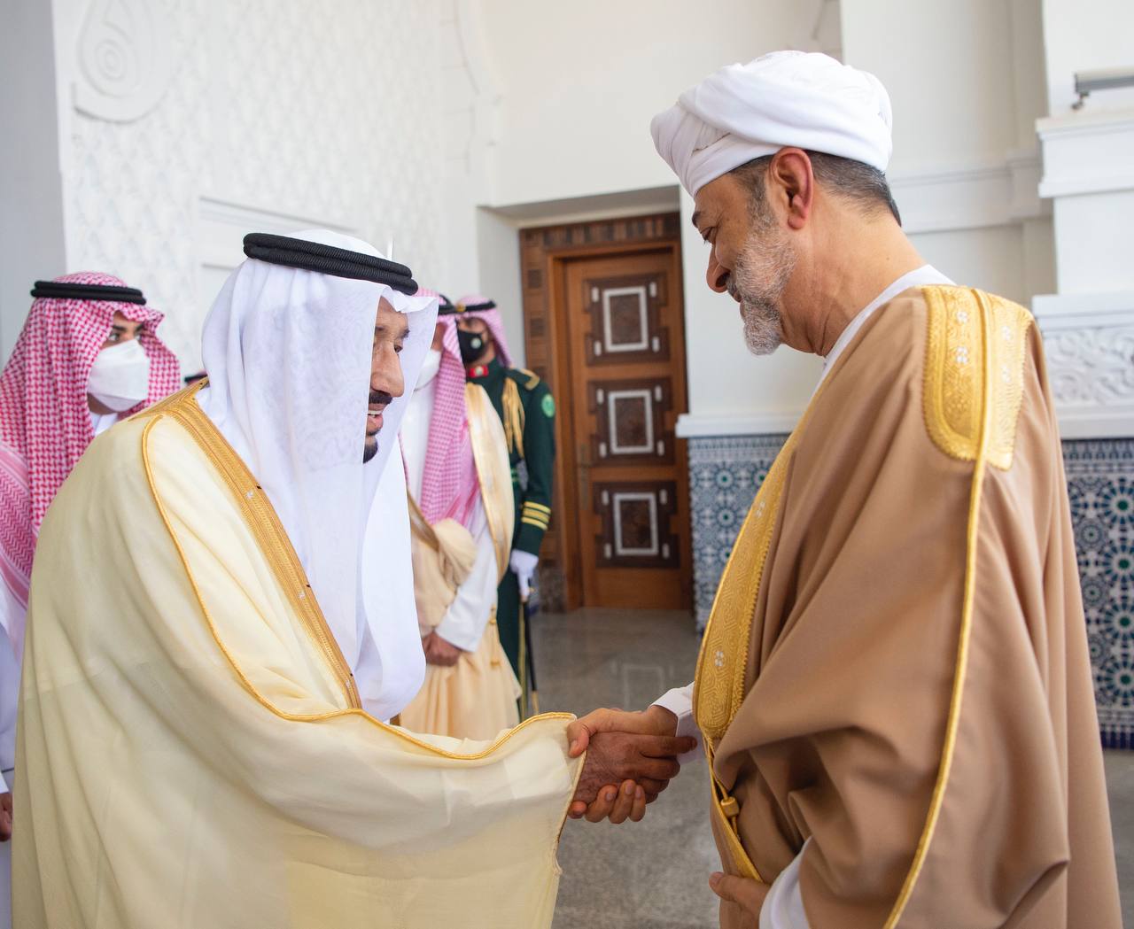 استقبل خادم الحرمين الشريفين الملك سلمان بن عبدالعزيز، في نيوم، اليوم (الأحد)، سلطان عُمان، السلطان هيثم بن طارق الذي يقوم بزيارة إلى المملكة.