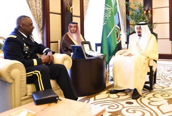 استقبل صاحب السمو الملكي الأمير سلمان بن عبدالعزيز آل سعود ولي العهد نائب رئيس مجلس الوزراء وزير الدفاع في مكتبه بجدة اليوم معالي قائد القيادة المركزية الأمريكية الفريق أول لويد جيه أوستن والوفد المرافق له.