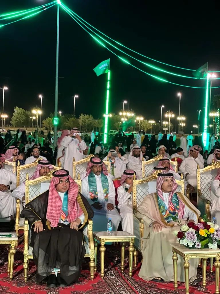 وعند وصول محافظ تيماء مقر الحفل عزف السلام الملكي، وتضمن الحفل عددا من القصائد الوطنية وأوبريت وطنيا، إضافة إلى عرض مرئي يحكي رؤية الوطن وختم الحفل بالعرضة السعودية.