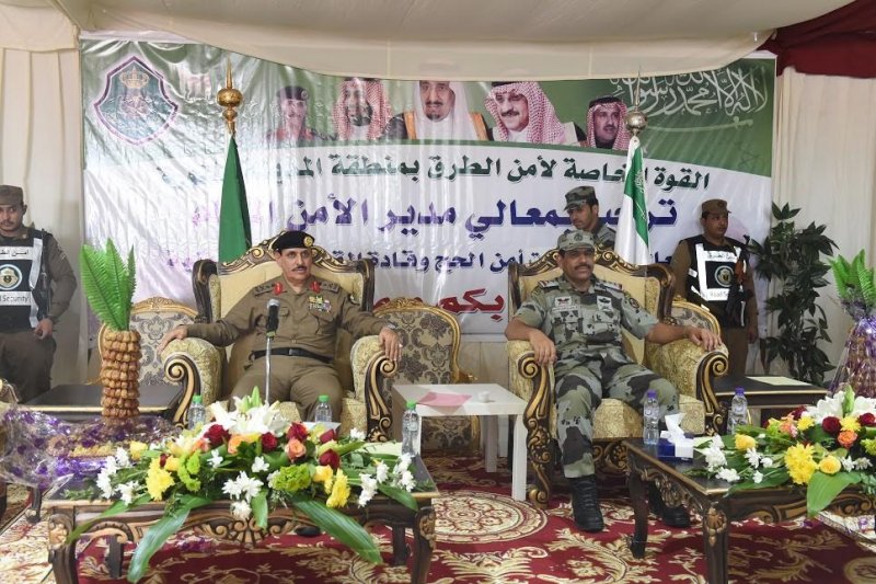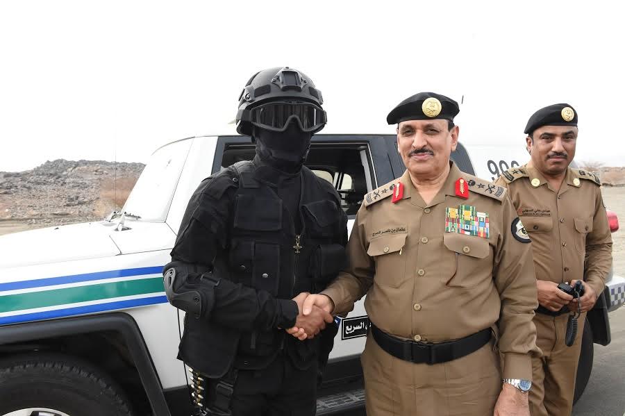 اختتم معالي مدير الأمن العام الفريق عثمان بن ناصر المحرج زيارته لمنطقة المدينة المنورة أمس الاثنين الموافق ١٤٣٧/١١/٢٦هـ يرافقه معالي قائد قوات أمن الحج الفريق خالد بن قرار الحربي وعدد من قادة قوات أمن الحج بتفقد مراكز الضبط الأمني الواقعة على الطريق البري بين المدينة المنورة ومكة المكرمة – ووقف على جاهزيتها واستعدادها لاستقبال حجاج بيت الله الحرام القادمين عن طريق البر وتوقف في عدد من المراكز ونقاط الضبط الأمني وكذلك نقاط التهدئة وتفقد مركز الضبط الأمني بالأكحل التقى خلالها ومرافقيه بمنسوبي القوات الخاصة لأمن الطرق من ضباط وضباط صف وأثنى على ما تقوم به قوات أمن الطرق من ادوار مختلفة في أعمال الضبط الأمني والمروري وتقديم الخدمات الانسانية لسالكي الطرق البرية وحثهم على بذل المزيد من الجهود والتفاني في اداء الواجب خدمة للدين والوطن وقيادته الرشيدة، واهمية احتساب الآجر من الله واخلاص النية له ، مع الاخذ بأسباب الحيطة والحذر لمواجهة اي طارئ والاستفادة من جميع التجهيزات الأمنية التي تم تأمينها لأعمال المهام الأمنية.