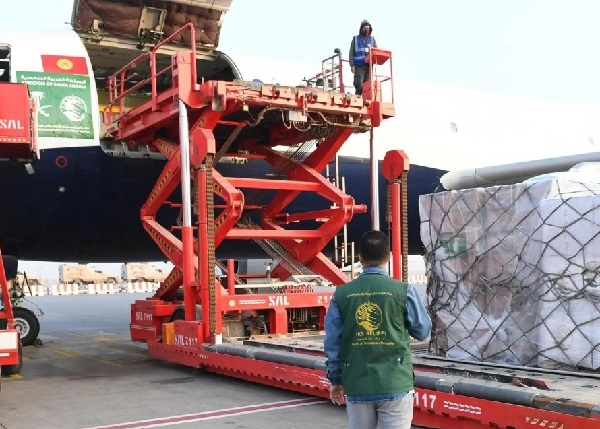 غادرت مطار الملك خالد الدولي بالرياض، اليوم، الطائرة الإغاثية السعودية العاشرة متجهة إلى مطار العريش الدولي بجمهورية مصر العربية، والتي يسيرها مركز الملك سلمان للإغاثة، تمهيداً لنقلها إلى المتضررين داخل قطاع غزة، حيث تحمل على متنها مساعدات إغاثية متنوعة شملت (مواد غذائية، وإيوائية، وطبية) تزن 35 طناً، وذلك ضمن الحملة الشعبية لإغاثة الشعب الفلسطيني الشقيق في قطاع غزة، والتي وجه بها خادم الحرمين الشريفين الملك سلمان بن عبدالعزيز آل سعود، وصاحب السمو الملكي الأمير محمد بن سلمان بن عبدالعزيز ولي العهد رئيس مجلس الوزراء – حفظهما الله- .