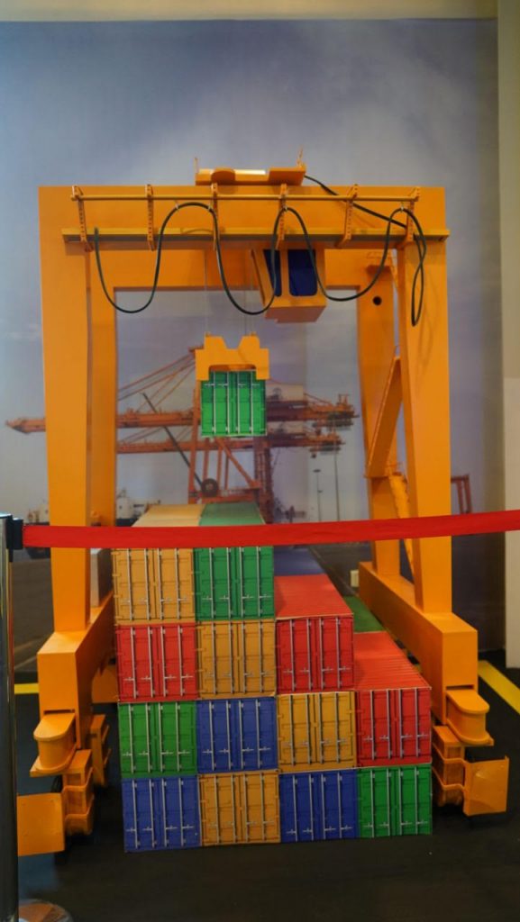 ويتعرف الزائر خلال جولته بالمبنى على مكونات الموانئ الحديثة من أبراج مراقبة ورافعات آلية، وأجهزة رصد ومتابعة الحدود البحرية, والتقنيات الحديثة المستخدمة في مناولة البضائع من ظهور السفن إلى المرافئ والعكس.