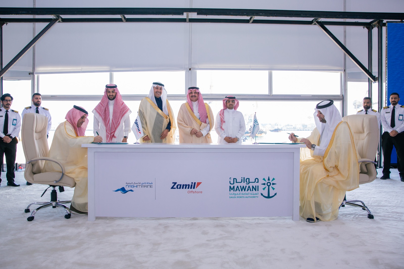 رعى صاحب السمو الملكي الأمير سعود بن نايف بن عبدالعزيز أمير المنطقة الشرقية بحضور معالي وزير النقل والخدمات اللوجستية، رئيس مجلس إدارة الهيئة العامة للموانئ المهندس صالح بن ناصر الجاسر ، في ميناء الملك عبدالعزيز بالدمام ظهر أمس توقيع الهيئة العامة للموانئ “موانئ” 4 عقود لتقديم الخدمات البحرية باستثمارات من قبل القطاع الخاص تتجاوز مليار ريال وذلك مع كل من “شركة الزامل للخدمات البحرية”، و”شركة ناغي للأعمال البحرية”، لتقديم مجموعة من الخدمات البحرية في 8 موانئ تابعة للهيئة، بالتعاون مع وزارة النقل والخدمات اللوجستية، والمركز الوطني للتخصيص.
