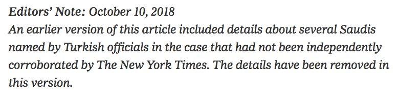 حذفت صحيفة نيويورك تايمز تغريدة من حسابها في تويتر بعد نشرها تتعلق بقضية اختفاء الصحافي السعودي #جمال_خاشقجي.
