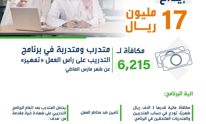 وأبان “هدف”، أن آلية البرنامج حددت مكافأة مالية قدرها 3 آلاف ريال شهريًا، تودع في حساب المتدربين والمتدربات الملتحقين في البرنامج، يقدمها الصندوق خلال فترة التدريب، وكذلك تأمين ضد مخاطر العمل، كما يحصلون بعد إتمام البرنامج التدريب على شهادة خبرة مقدمة من صندوق تنمية الموارد البشرية “هدف“.