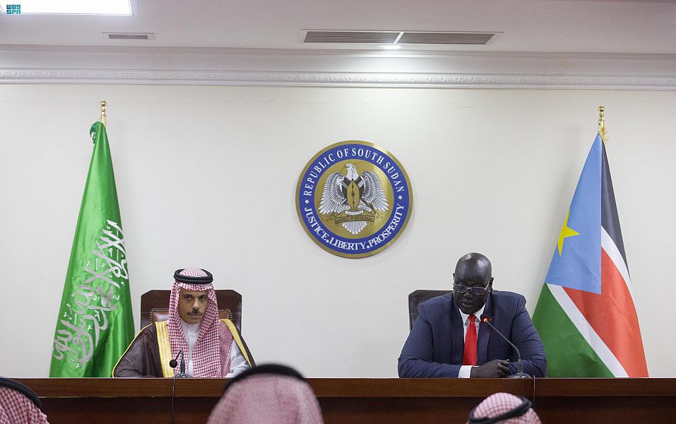 من جانبه، رحب معالي وزير خارجية جمهورية جنوب السودان بسمو وزير الخارجية، واصفاً زيارة سموه الرسمية إلى جوبا بالتاريخية في ظل التوترات التي يشهدها العالم، موضحاً أن بلاده تسعى لتعزيز علاقتها مع المملكة لإحداث توازن في ظل الرواج للاستقطابات حول العالم، وأن المملكة تمثل نموذجاً فريداً من نوعه بسماتها وقدراتها النوعية.