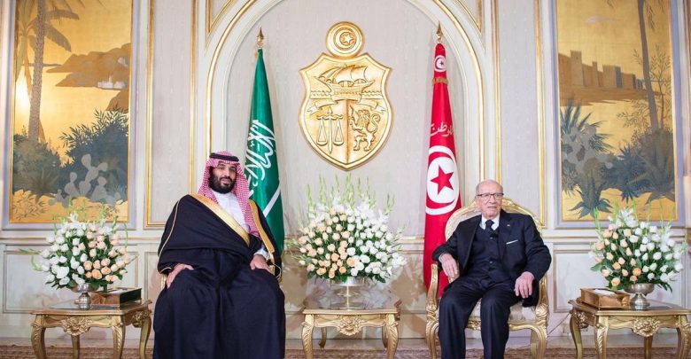 وكان في استقبال سمو ولي العهد في المطار الرئاسي في العاصمة تونس فخامة الرئيس الباجي قايد السبسي رئيس الجمهورية التونسية وكبار المسؤولين في الحكومة التونسية.
